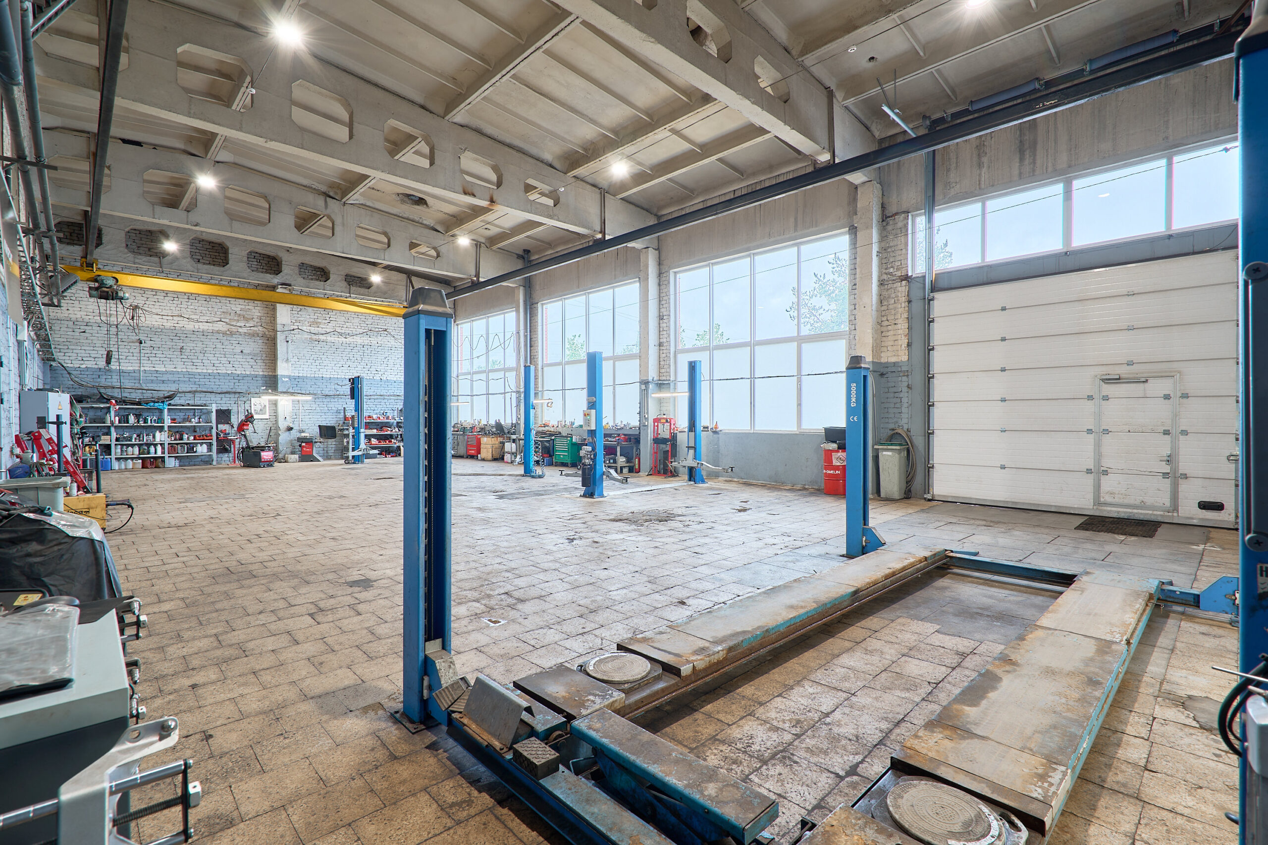 Augsti (3.7m) vārti un telferis smago automašīnu apkalpošanai
